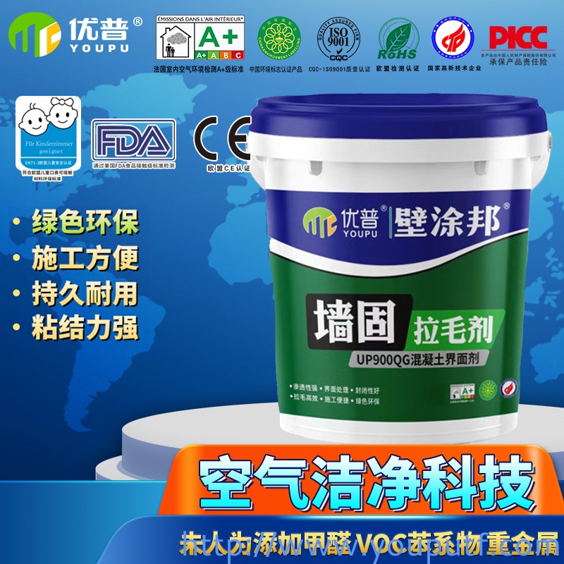 優(yōu)普壁涂邦墻固拉毛劑是一種由聚合物乳液、水溶性膠體、多功能助劑組成的全新環(huán)保新型墻面加固產(chǎn)品。本產(chǎn)品具有封閉效果好、滲透性強、拉毛強度超高等特點。該產(chǎn)品與水泥混合可對光滑墻面進行人工造毛提高膩子或灰漿與基層的粘結(jié)力。